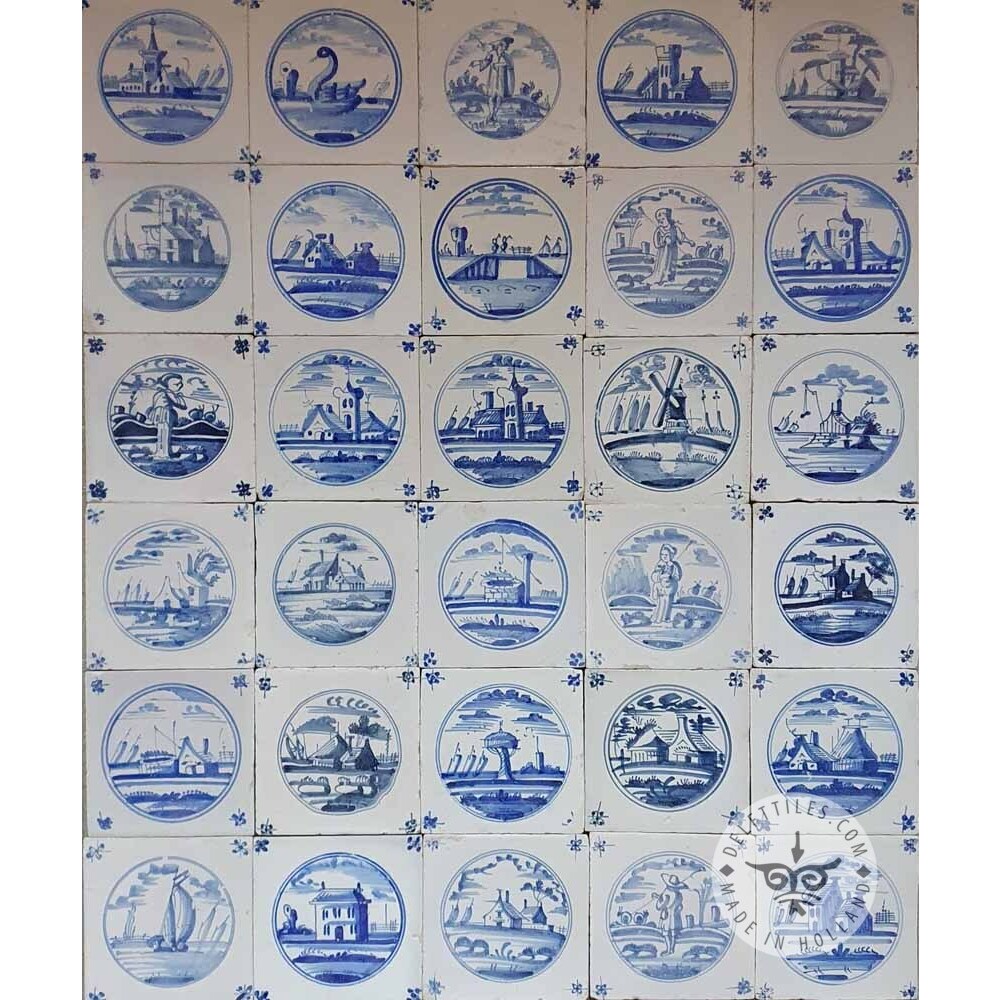 17th/ 18th /19th century Dutch Delft Antique tiles showcase. These tiles are not for sale.