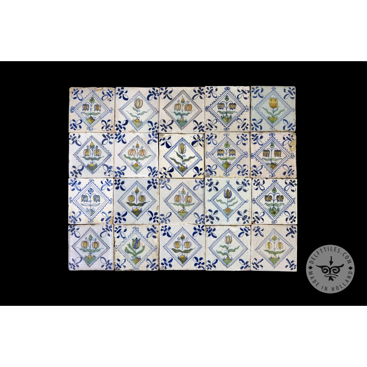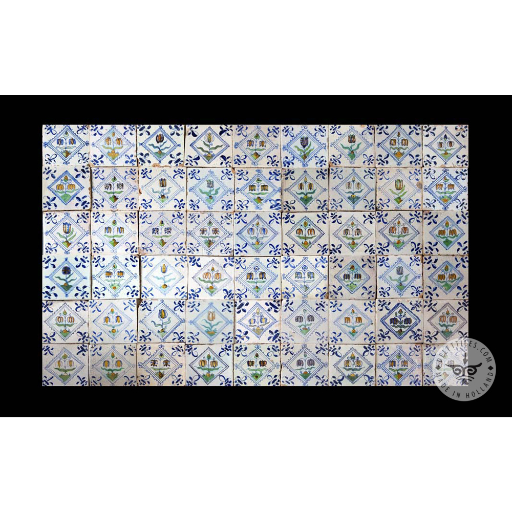 Antique Delft Tiles set #56 – flowers square