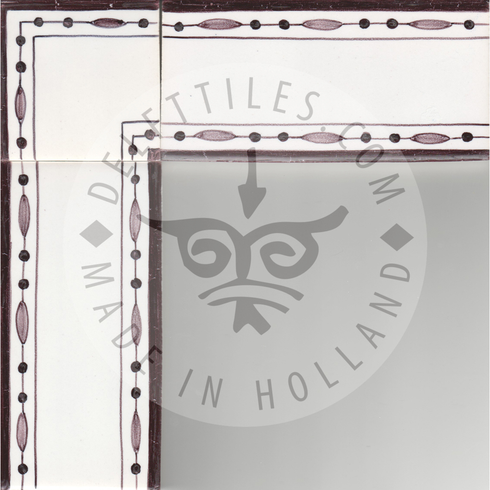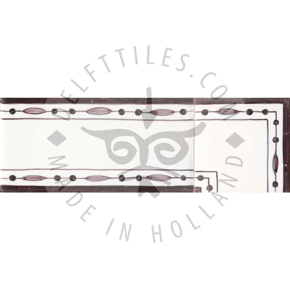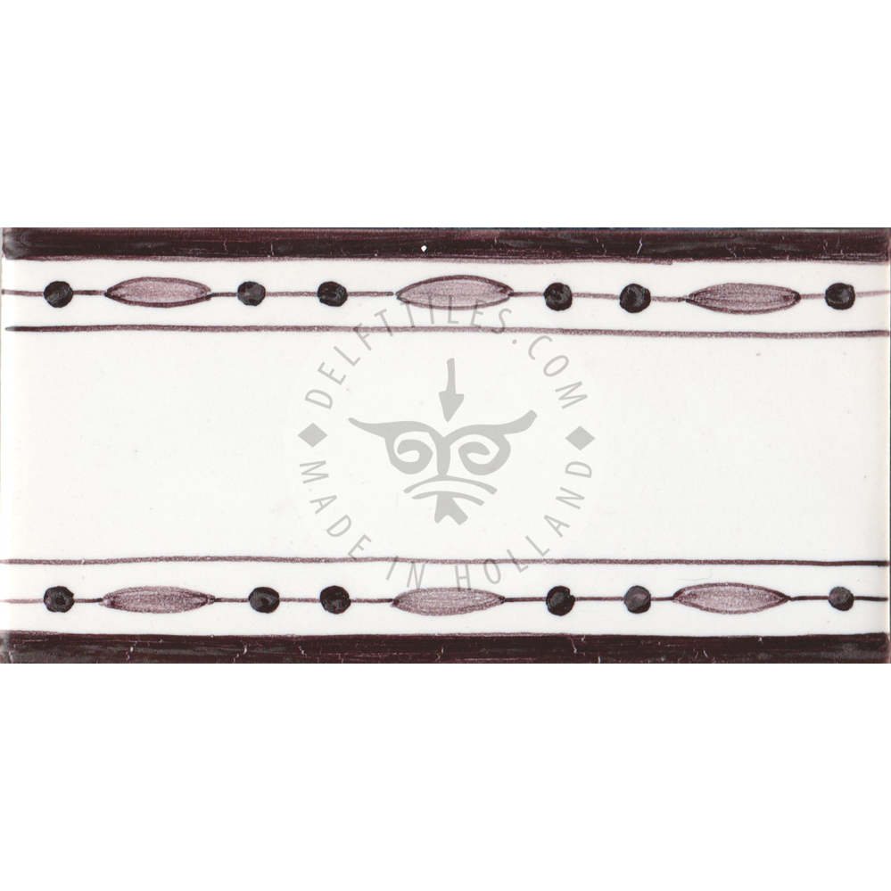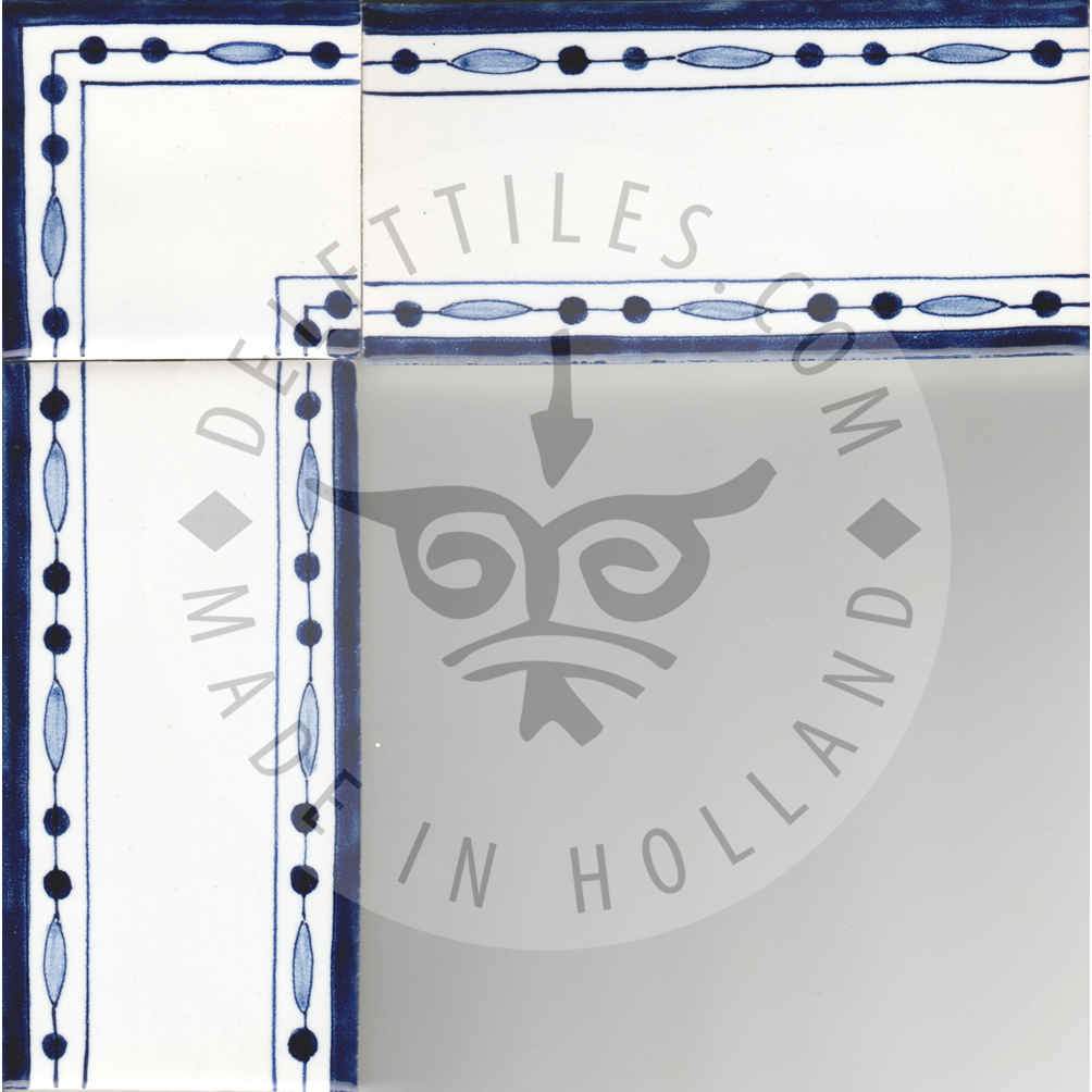 Border Tile 10 – line and dots 13 x 6.5 cm (5-1/8 x 2–7/16 in) Corner pieces: 6.5 x 6.5 cm (2–7/16 in) Can be painted on a full field tile as well (5-1/8 in sq.) Bullnose edge available on request. Product Number: B10 Tile color Off white Ivory Antique look i - tiles have more irregularities - invisible or visible made crackled glaze Decoration color Blue Sepia Multi color Border Tile 10 - line and dots quantity Add to cart Add to Quote Product already in the list. View quotation list SKU: B10 Categories: Border, Border tiles, Delft Blue tiles & panels