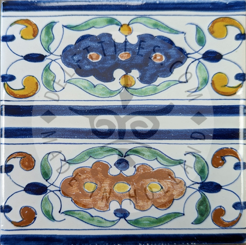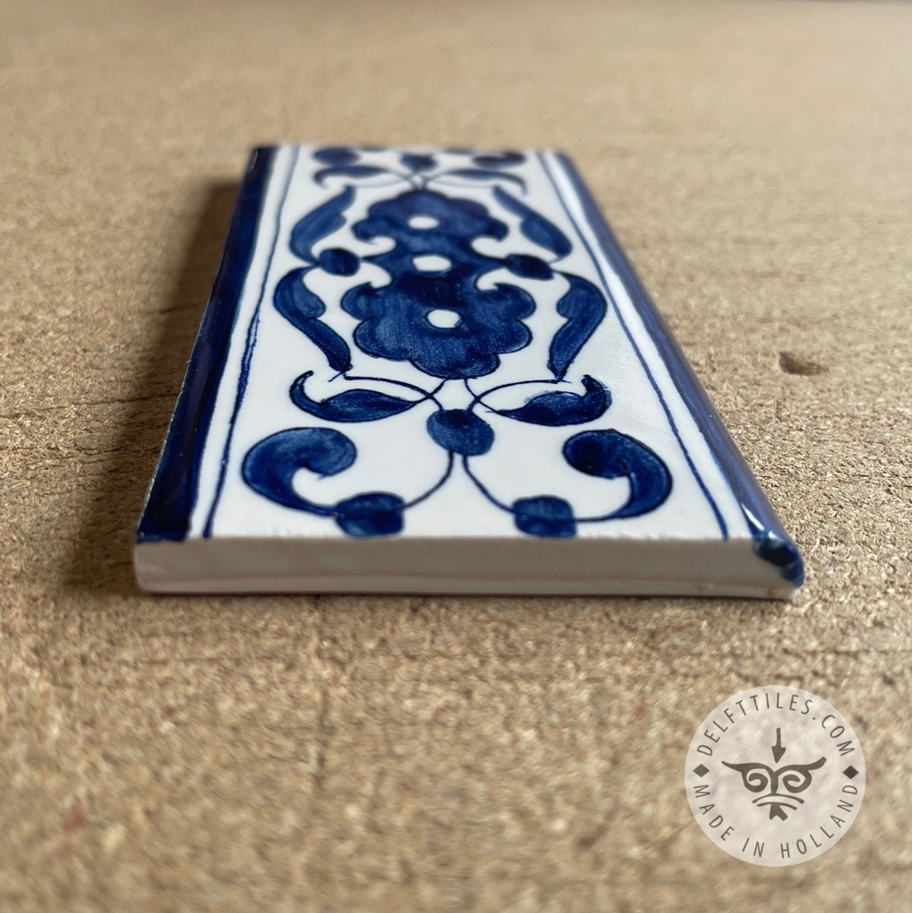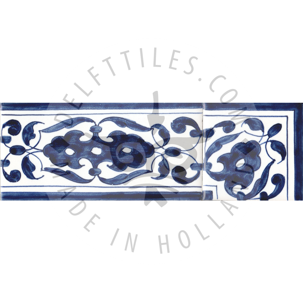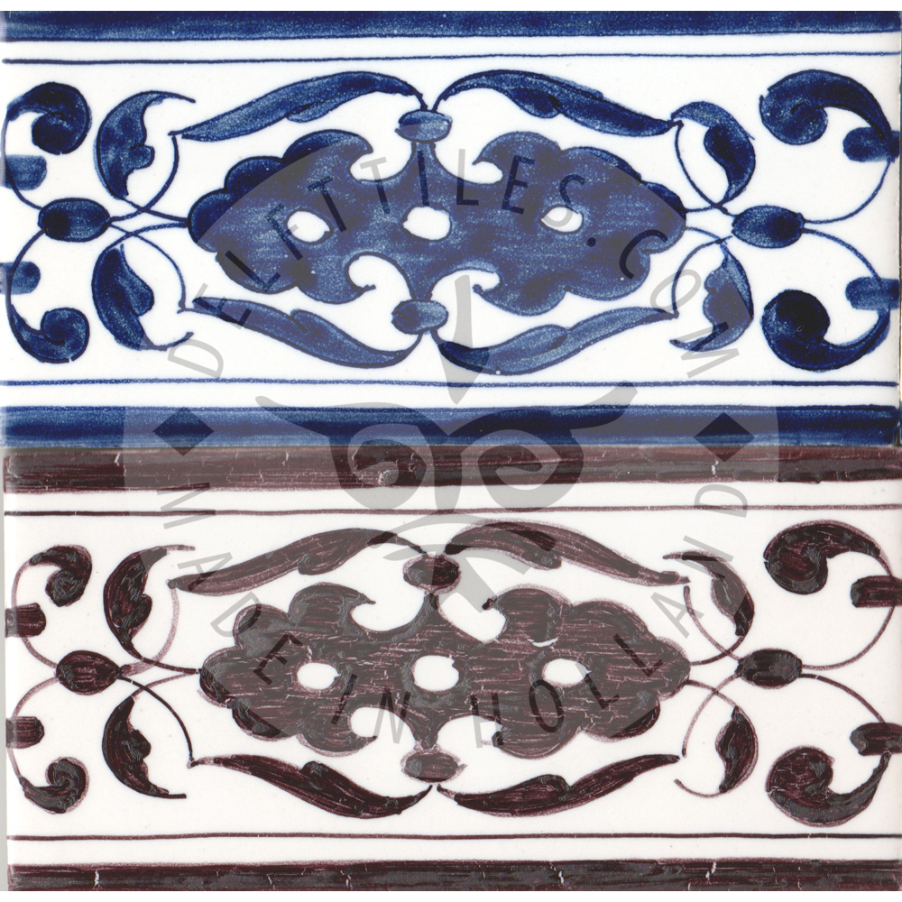 Border Tile 18 13 x 6.5 cm (5-1/8 x 2–7/16 in) Corner pieces: 6.5 x 6.5 cm (2–7/16 in) Can be painted on a full field tile as well (5-1/8 in sq.) Bullnose edge available on request. Multi Color has 2 options. Make a remark in request form. Product Number: B18 Tile color Off white Ivory Antique look i - tiles have more irregularities - invisible or visible made crackled glaze Decoration color Blue Sepia Multi color Border Tile 18 quantity Add to cart Add to Quote Product already in the list. View quotation list SKU: B18 Categories: Border, Border tiles, Delft Blue tiles & panels