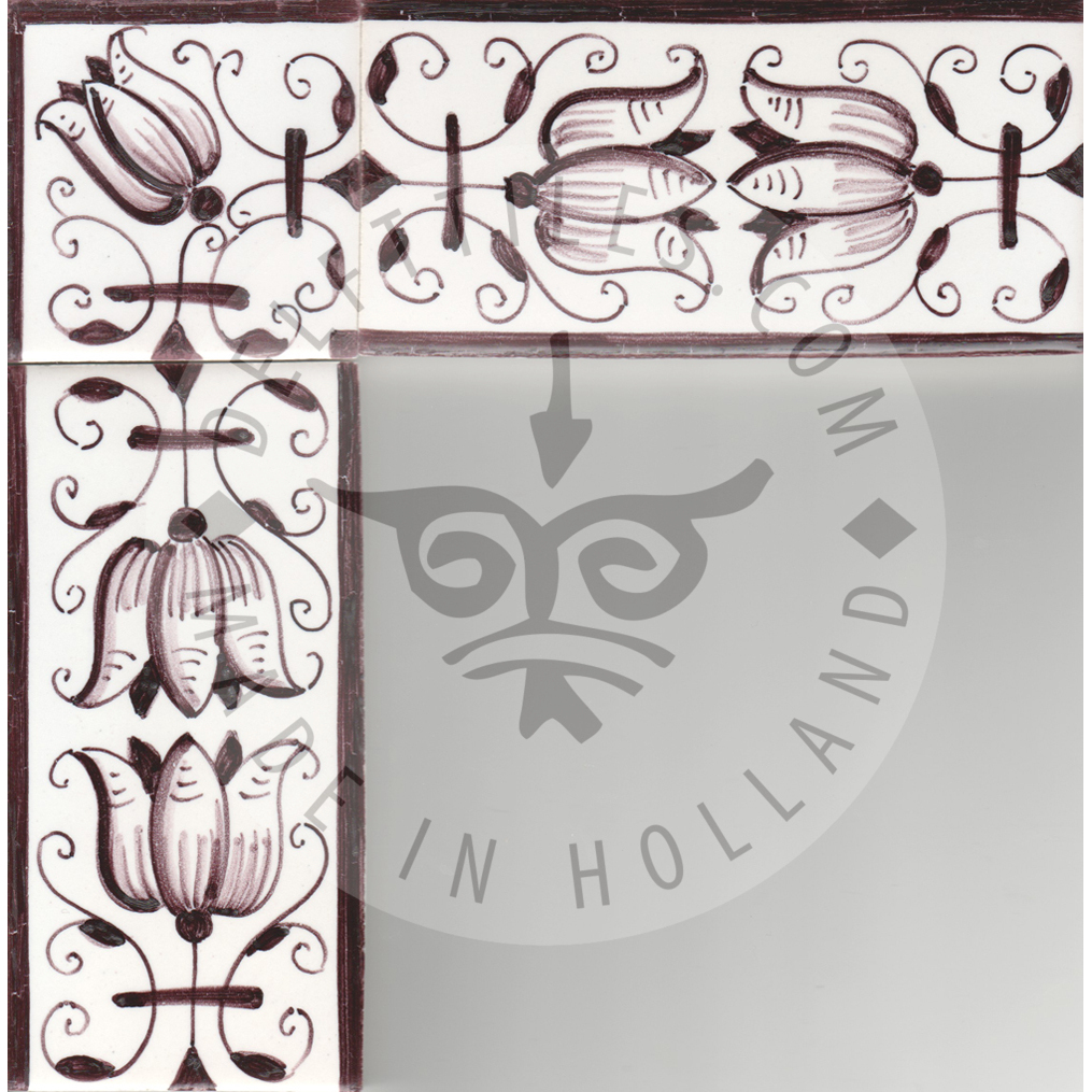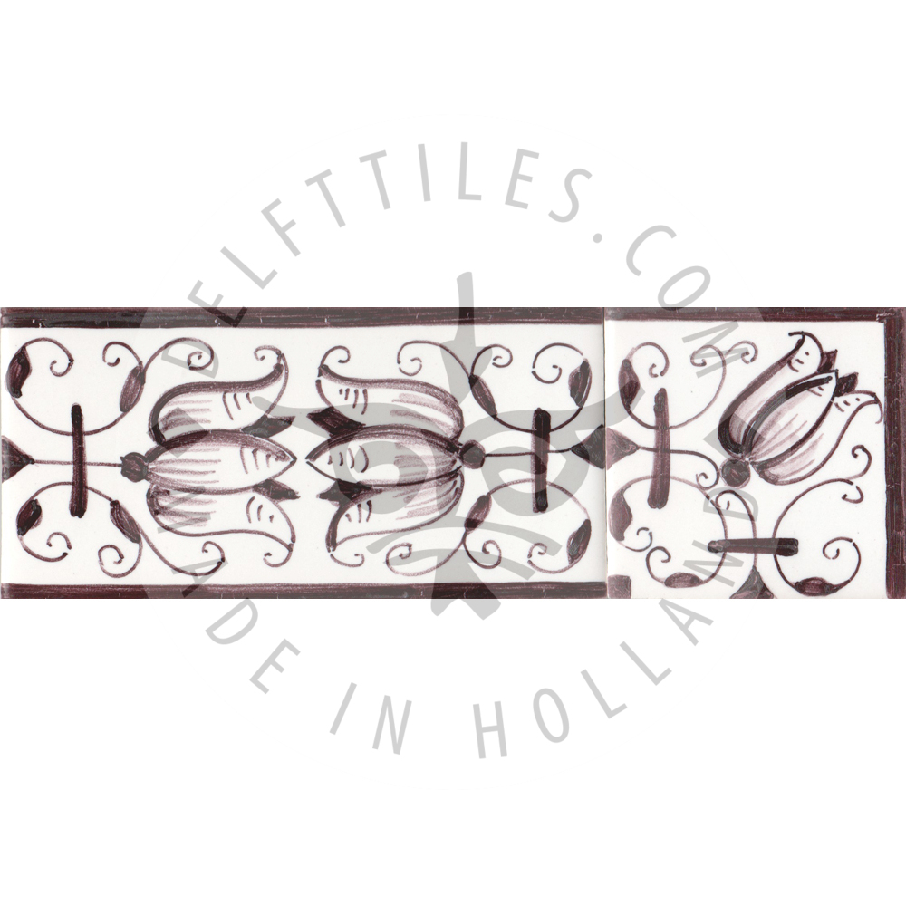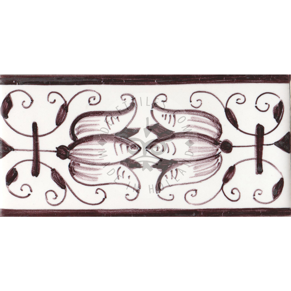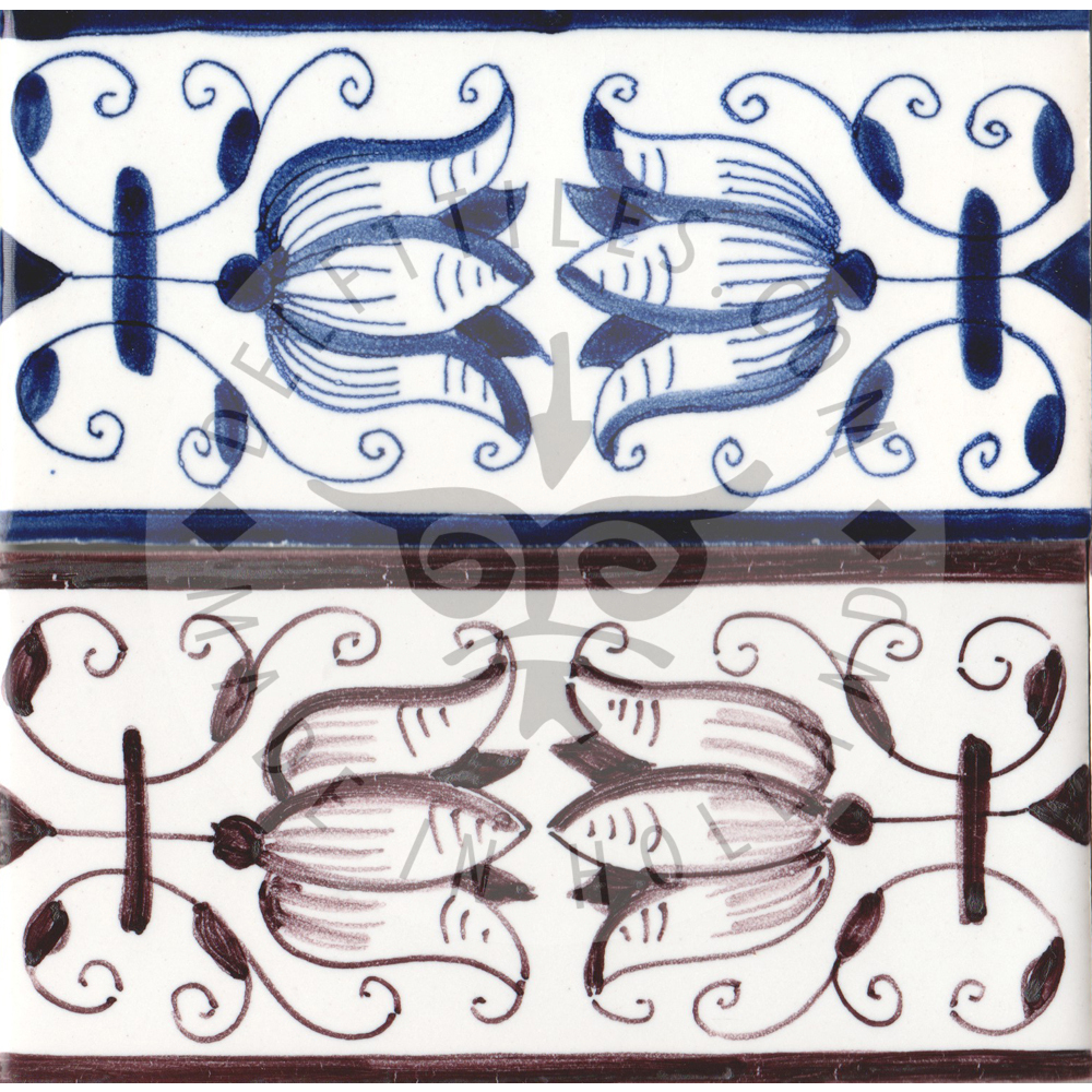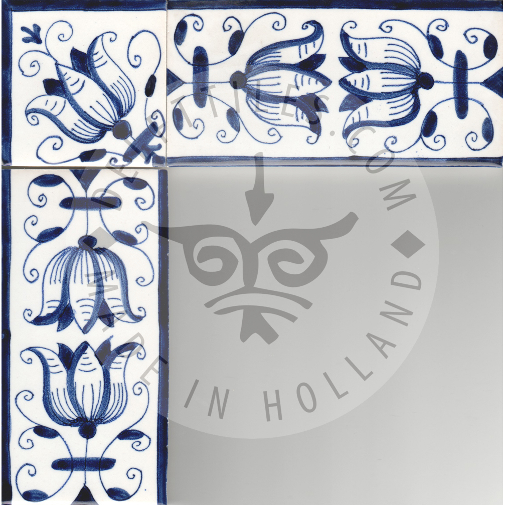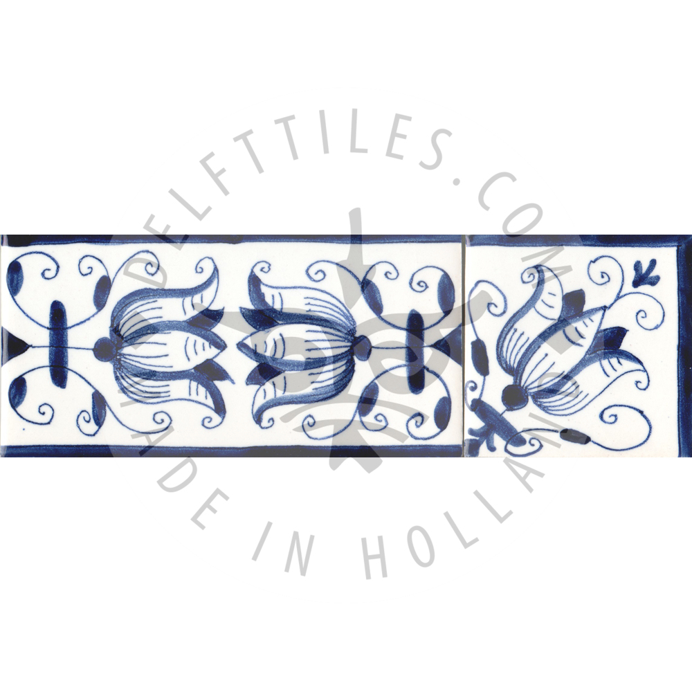 Border Tile 19 – fritillaria tulip 13 x 6.5 cm (5-1/8 x 2–7/16 in) Corner pieces: 6.5 x 6.5 cm (2–7/16 in) Can be painted on a full field tile as well (5-1/8 in sq.) Bullnose edge available on request. Product Number: B19 Tile color Off white Ivory Antique look i - tiles have more irregularities - invisible or visible made crackled glaze Decoration color Blue Sepia Multi color Border Tile 19 - fritillaria tulip quantity Add to cart Add to Quote Product already in the list. View quotation list SKU: B19 Categories: Border, Border tiles, Delft Blue tiles & panels