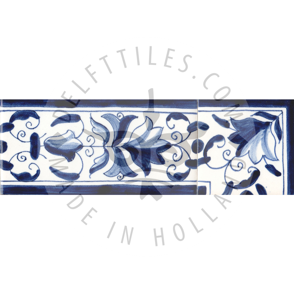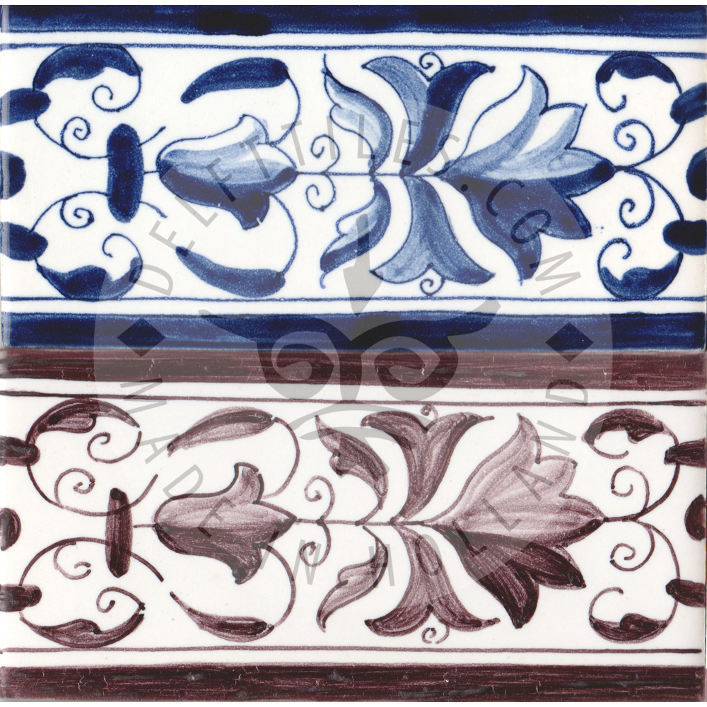 Border Tile 25 13 x 6.5 cm (5-1/8 x 2–7/16 in) Corner pieces: 6.5 x 6.5 cm (2–7/16 in) Can be painted on a full field tile as well (5-1/8 in sq.) Bullnose edge available on request. Product Number: B25 Tile color Off white Ivory Antique look i - tiles have more irregularities - invisible or visible made crackled glaze Decoration color Blue Sepia Multi color Border Tile 25 quantity Add to cart Add to Quote Product already in the list. View quotation list SKU: B25 Categories: Border, Border tiles, Delft Blue tiles & panels