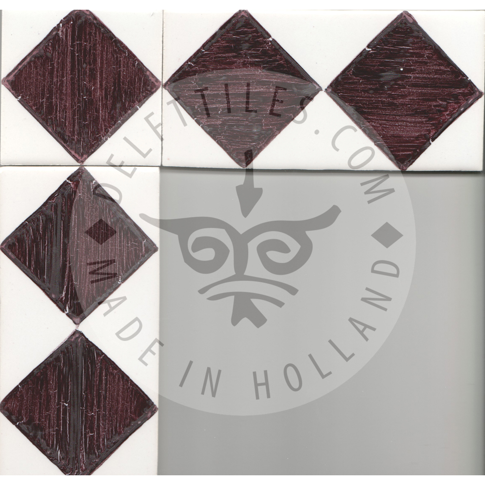 Border Tile 03 – Squares 13 x 6.5 cm (5-1/8 x 2–7/16 in) Corner pieces: 6.5 x 6.5 cm (2–7/16 in) Can be painted on a full field tile as well (5-1/8 in sq.) Bullnose edge available on request. Product Number: B03 Tile color Off white Ivory Antique look i - tiles have more irregularities - invisible or visible made crackled glaze Decoration color Blue Sepia Multi color Border Tile 03 - Squares quantity Add to cart Add to Quote Product already in the list. View quotation list SKU: B03 Categories: Border, Border tiles, Delft Blue tiles & panels