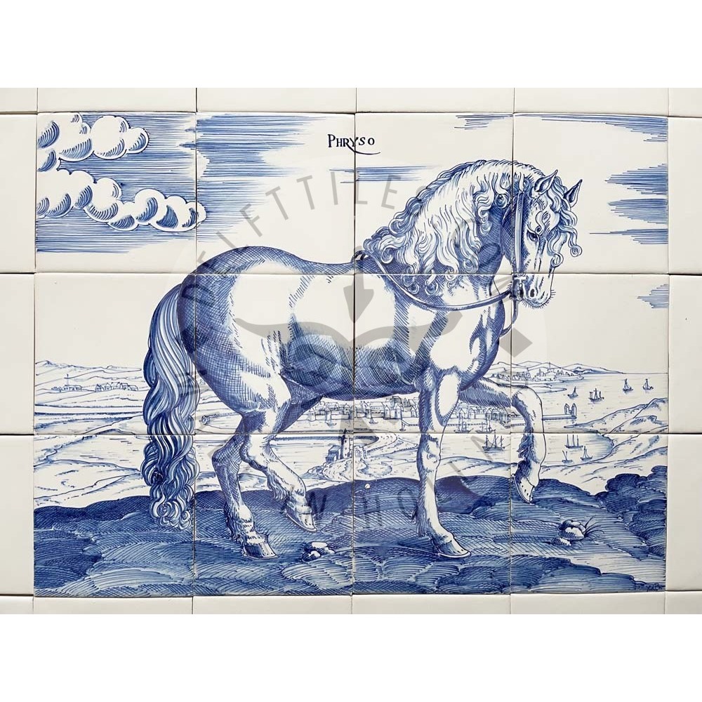 Dutch Horse on tiles 4×3 tiles (D12a) Size: 52 x 39 cm – 20-15/32 x 15-23/64 in Mural can be customized (e.g., color, size). Any border or trim can be added. Product number: D12a (12 tiles) Tile color Off white Ivory Antique look i - tiles have more irregularities - invisible or visible made crackled glaze Decoration color Blue Sepia Multi color Dutch Horse on tiles 4x3 tiles (D12a) quantity Add to cart Add to Quote Product already in the list. View quotation list SKU: D12a Categories: Animal Murals I Panels, Delft Blue tiles & panels, Panels, Panels Tag: panels