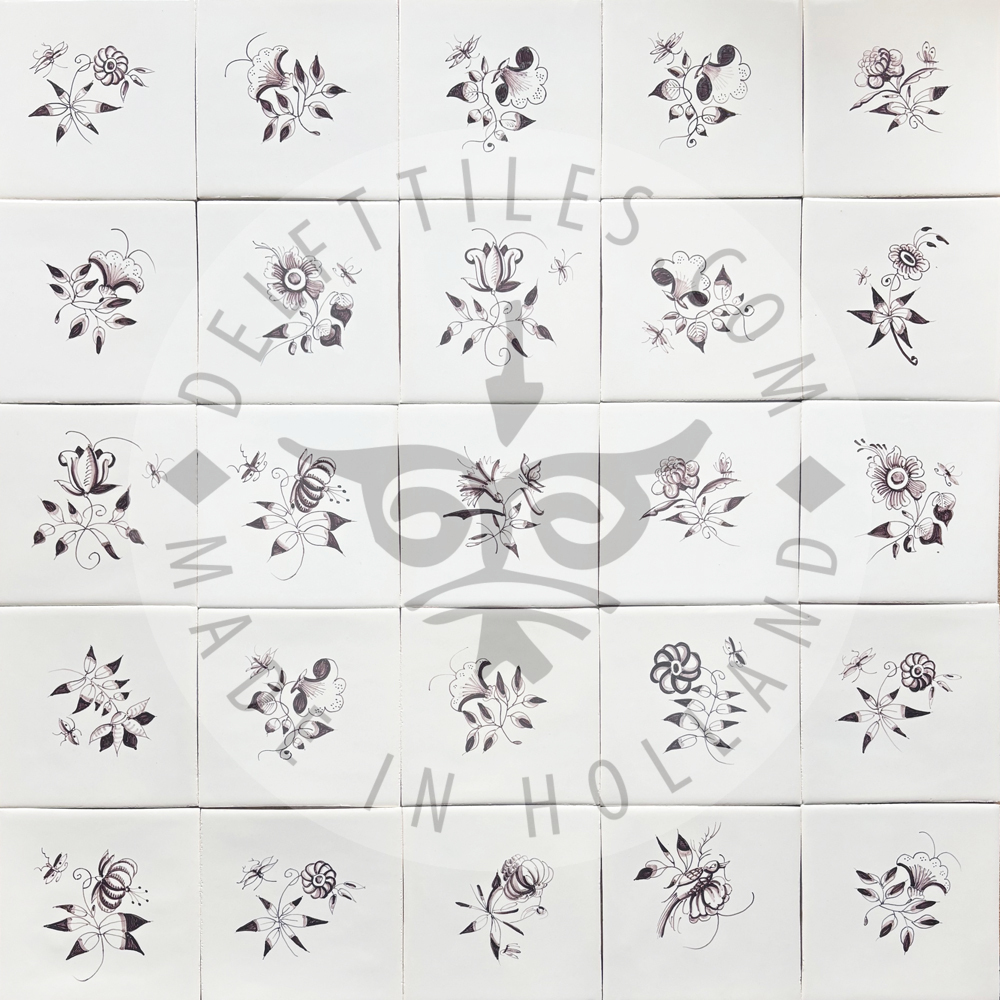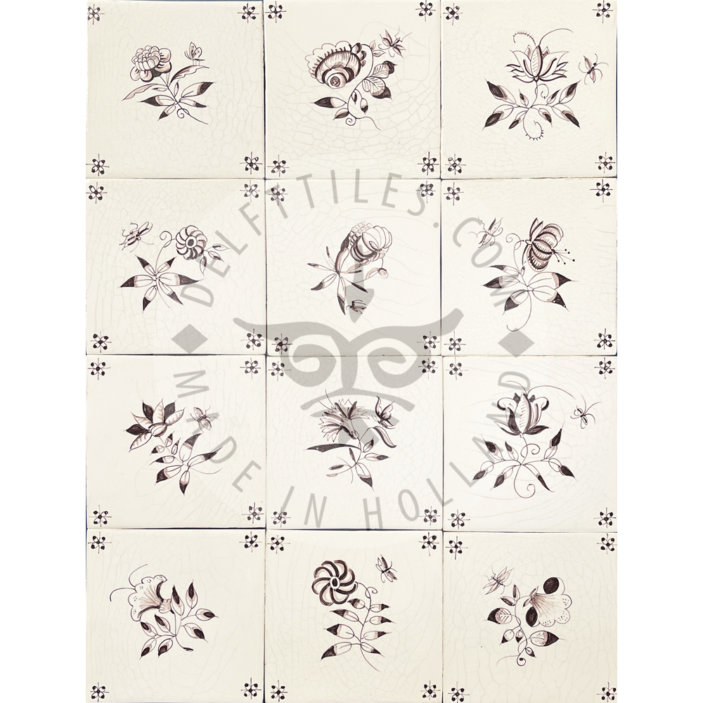 Elegant Small Flowers with Insects Sepia (BK3_s)
