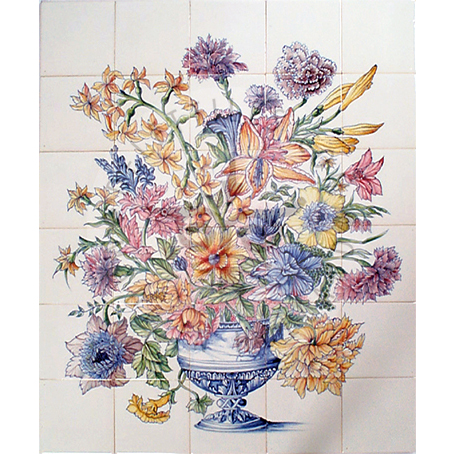 Flower Piece Color 5×6 tiles (BV30a_mc) Size: 65 x 78 cm – 25-19/32 x 30-45/64 in Mural can be customized (e.g. color, size). Any border or trim can be added around it. Product number: BV30a_mc (30 tiles) Tile color Off white Ivory Antique look i - tiles have more irregularities - invisible or visible made crackled glaze Decoration color Blue Sepia Multi color Flower Piece Color 5x6 tiles (BV30a_mc) quantity Add to cart Add to Quote Product already in the list. View quotation list SKU: BV30a_mc Categories: Delft Blue tiles & panels, Floral Murals I Panels, Panels, Panels Tag: panels