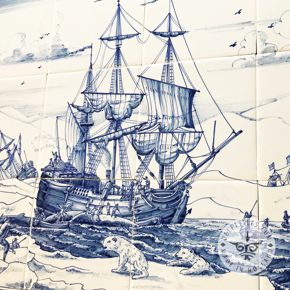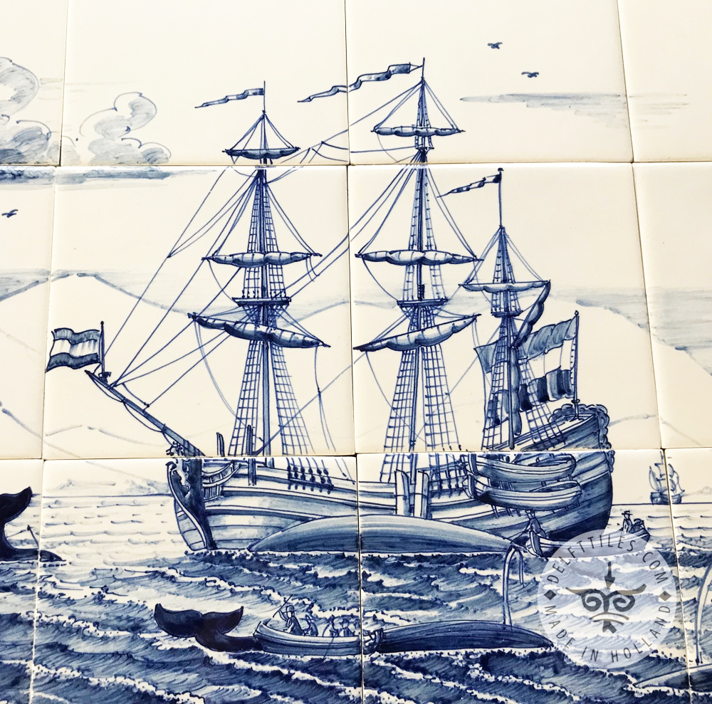 Whale Hunt tile Mural 10×3 tiles (S30)