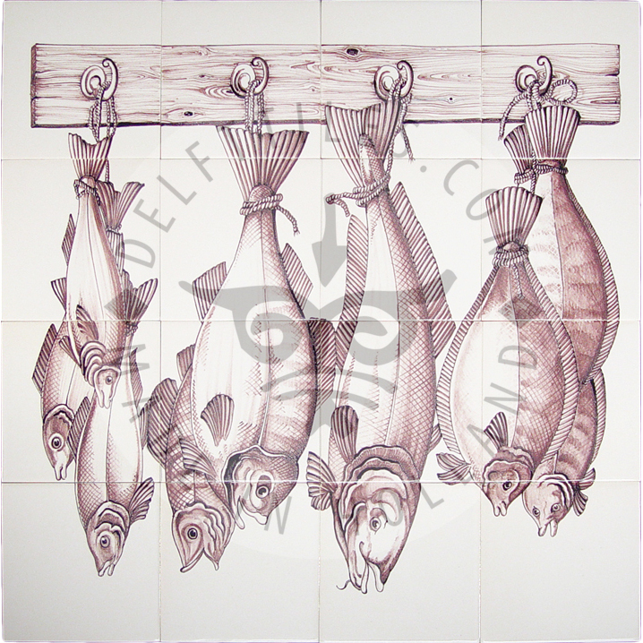 Hanging Fish Sepia tile mural 4×4 tiles (D16a_s) Size: 52x 52 cm – 20-15/32 x 20-15/32 in Mural can be customized (e.g., color, size). Choose “sepia” for this color. Any border or trim can be added. Product number: D16a_s (16 tiles) Tile color Off white Ivory Antique look i - tiles have more irregularities - invisible or visible made crackled glaze Decoration color Blue Sepia Multi color Hanging Fish Sepia tile mural 4x4 tiles (D16a_s) quantity Add to cart Add to Quote Product already in the list. View quotation list SKU: D16a Categories: Animal Murals I Panels, Delft Blue tiles & panels, Panels, Panels Tag: panels