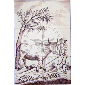 Man & Cow tile panel 2×3 tiles (D6d_s) Size: 26 x 39 cm – 10-15/64 x 15-23/64 in Mural can be customized (e.g., color, size). Any border or trim can be added. Product number: D6d_s (6 tiles) Tile color Off white Ivory Antique look i - tiles have more irregularities - invisible or visible made crackled glaze Decoration color Blue Sepia Multi color Man & Cow tile panel 2x3 tiles (D6d_s) quantity Add to cart Add to Quote Product already in the list. View quotation list SKU: D6d_s Categories: Animal Murals I Panels, Delft Blue tiles & panels, Panels, Panels Tag: panels