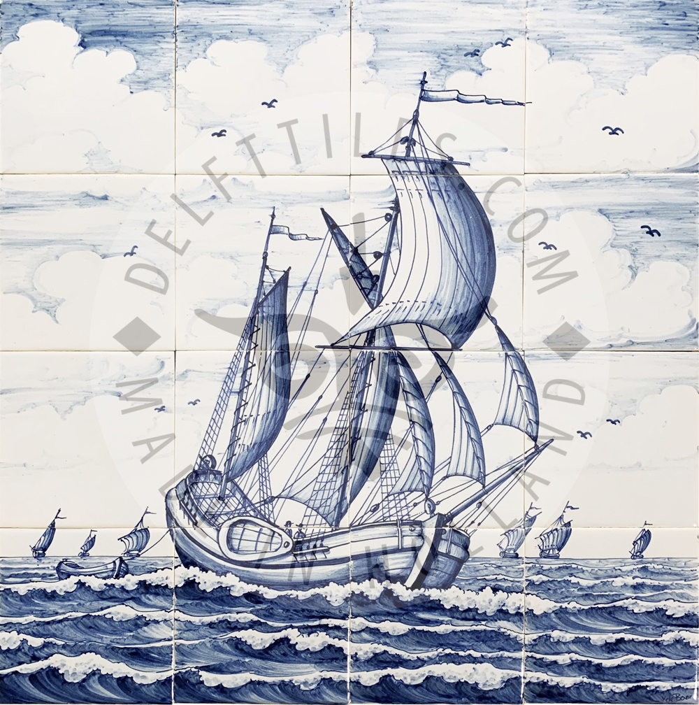 Sailing Ship tile panel 4×4 tiles (S16f) Size: 52 x 52 cm – 20-15/32 x 20-15/32 in Mural can be customized (e.g., color, size). Any border or trim can be added. Product number: S16f (16 tiles). Tile color Off white Ivory Antique look i - tiles have more irregularities - invisible or visible made crackled glaze Decoration color Blue Sepia Multi color Sailing Ship tile panel 4x4 tiles (S16f) quantity Add to cart Add to Quote Product already in the list. View quotation list SKU: S16f Categories: Delft Blue tiles & panels, Panels, Panels, Ship panels I Panels Tag: panels
