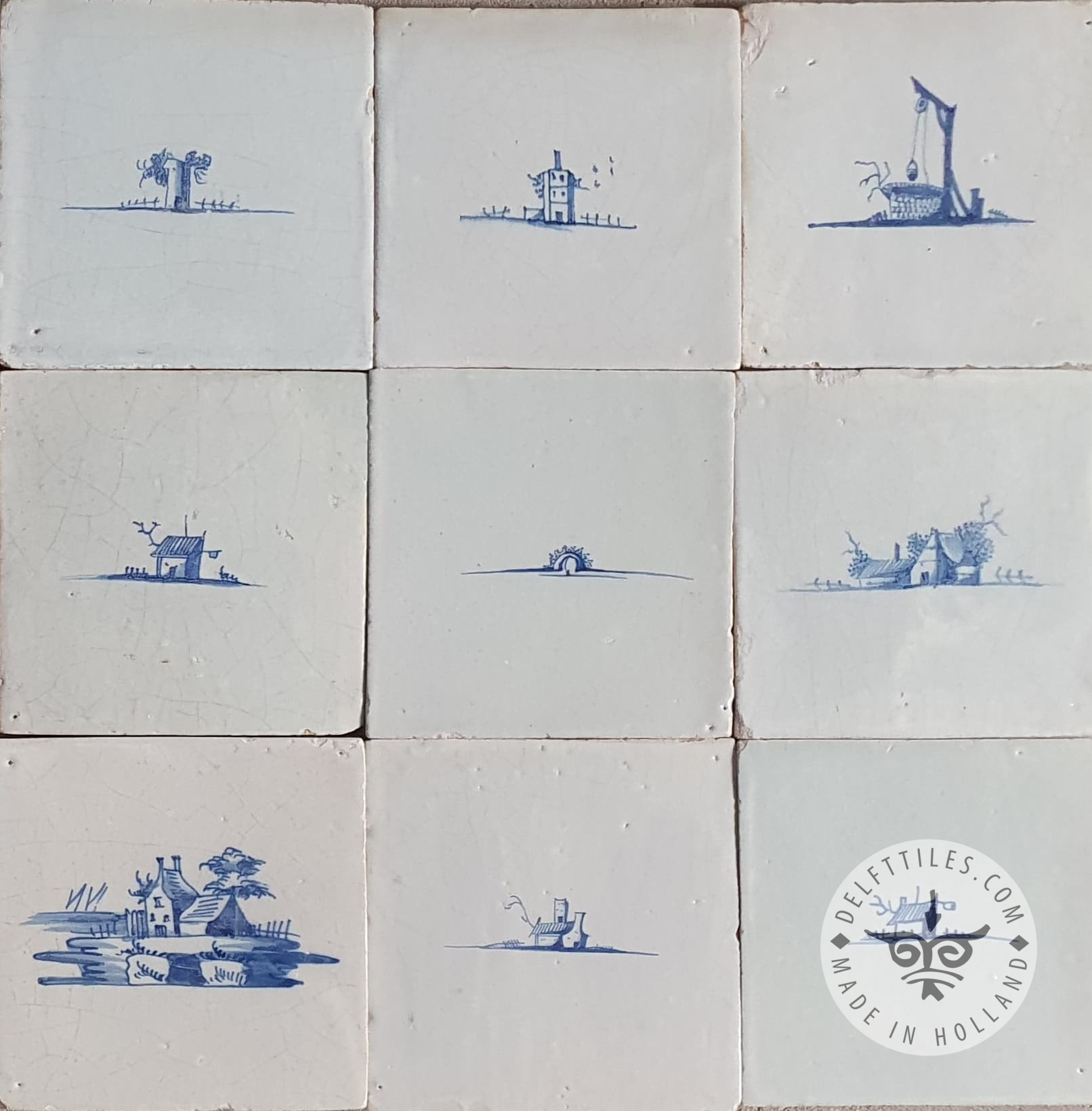 Small Delft Blue Landscape Tiles 17th and 18th century
