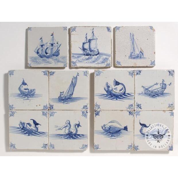 17th/ 18th /19th century Dutch Delft Antique tiles showcase. These tiles are not for sale.