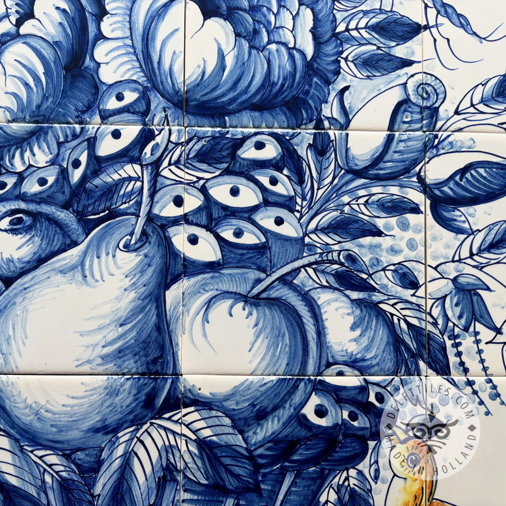 Fliesenwand mit Obst- und Blumenmotiv, 7×5 Fliesen (BM35a)