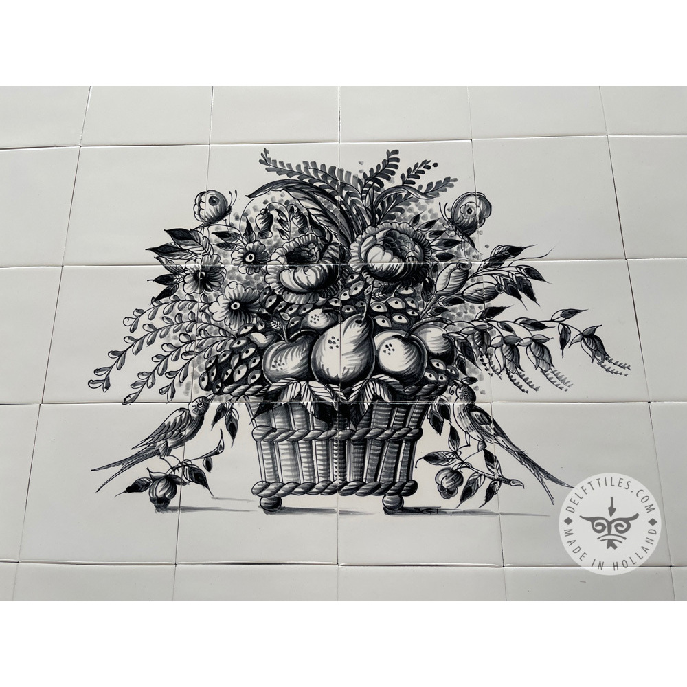 Fruchtblumen-Wandbild schwarz 4×3 Fliesen (BM12c_zw)