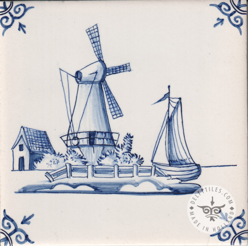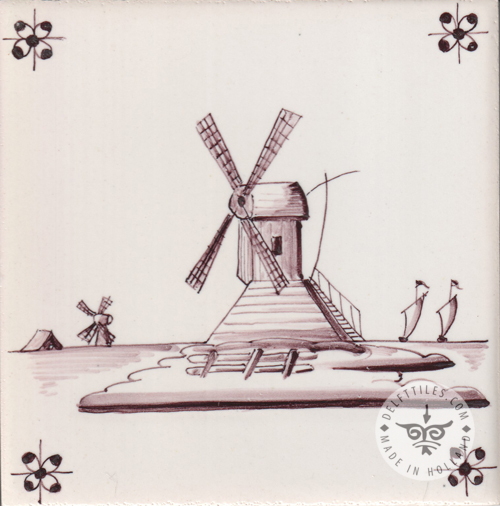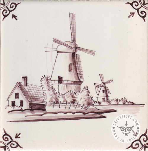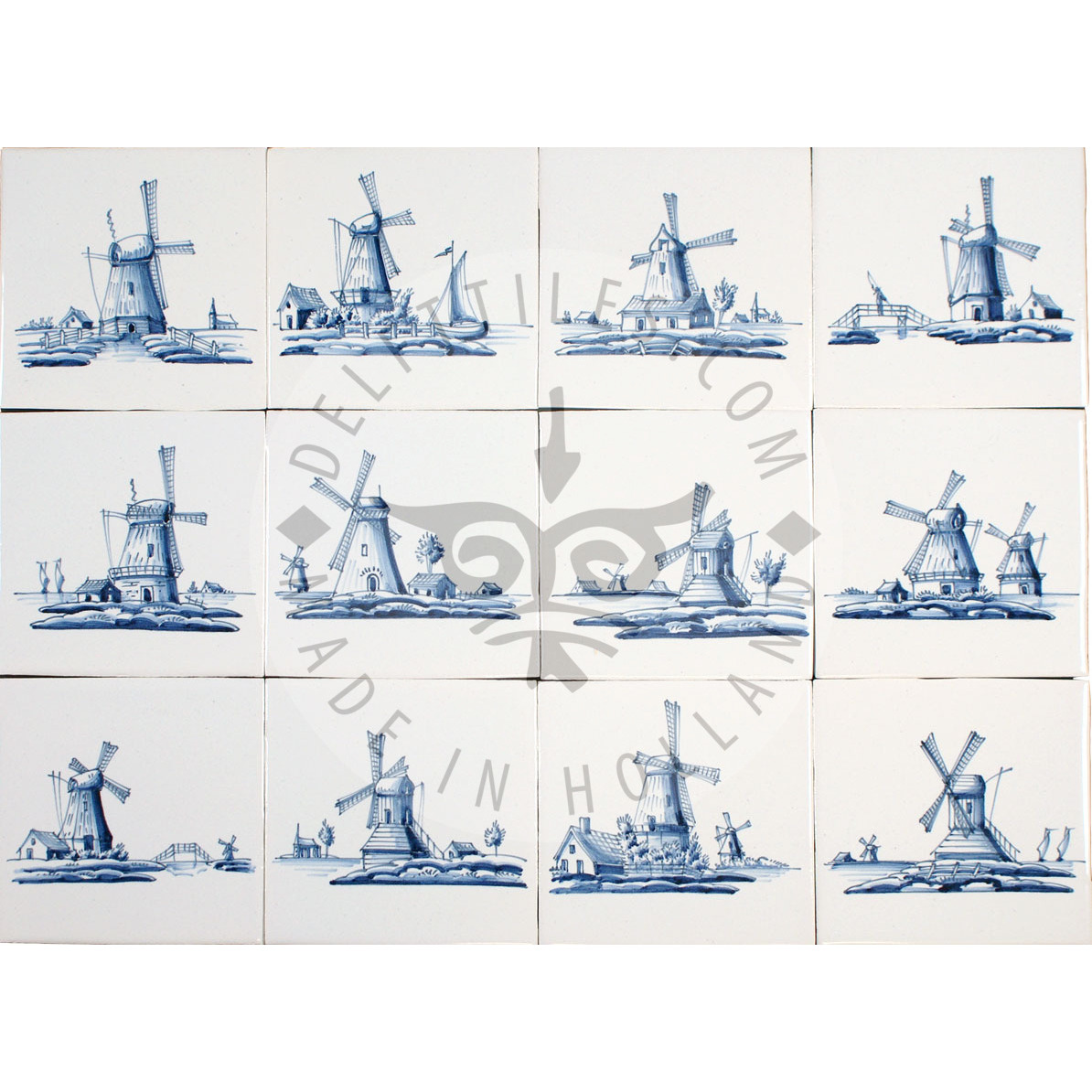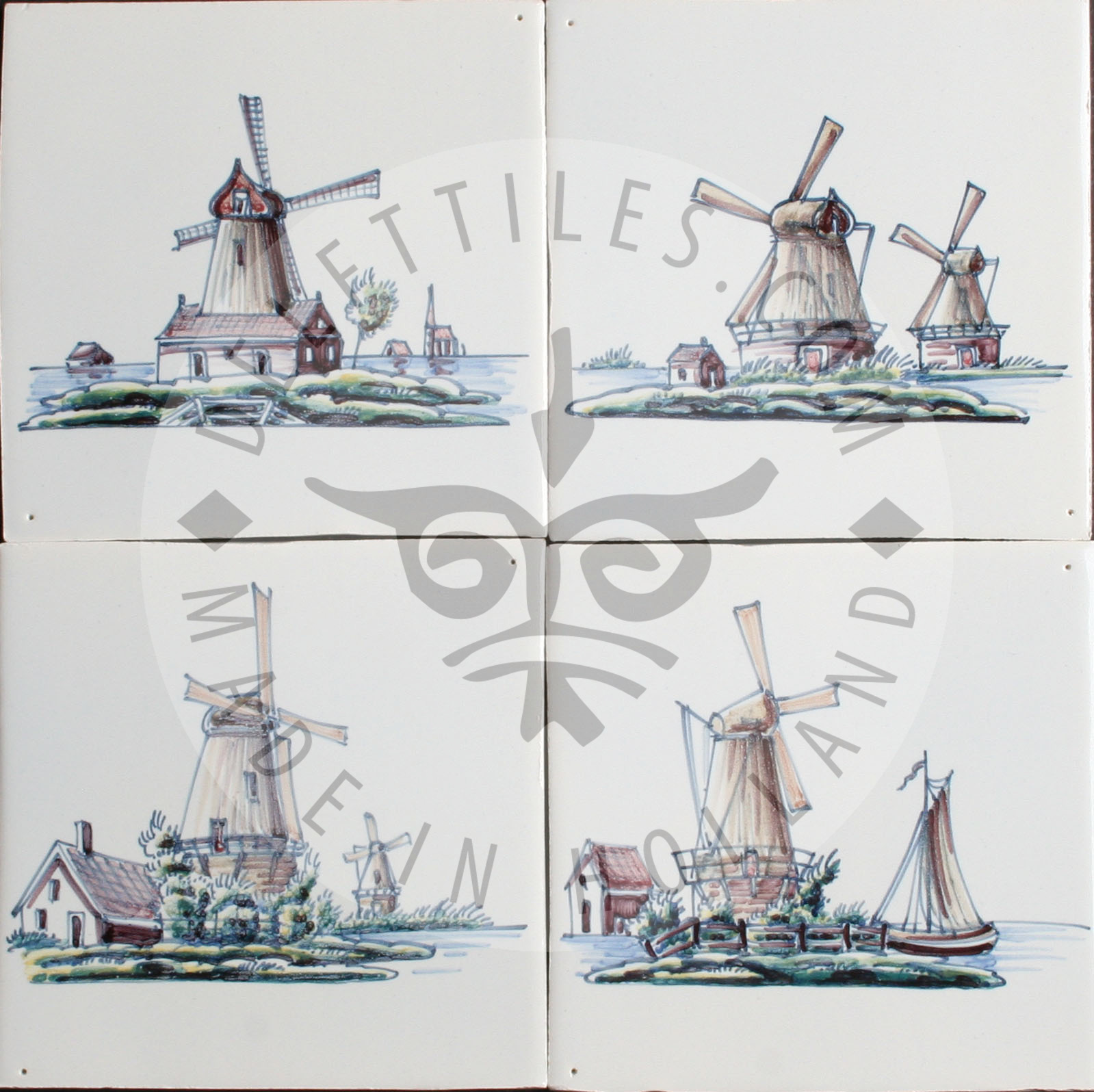 Niederländische Windmühlenfliesen im Landschaftsstil (LM)