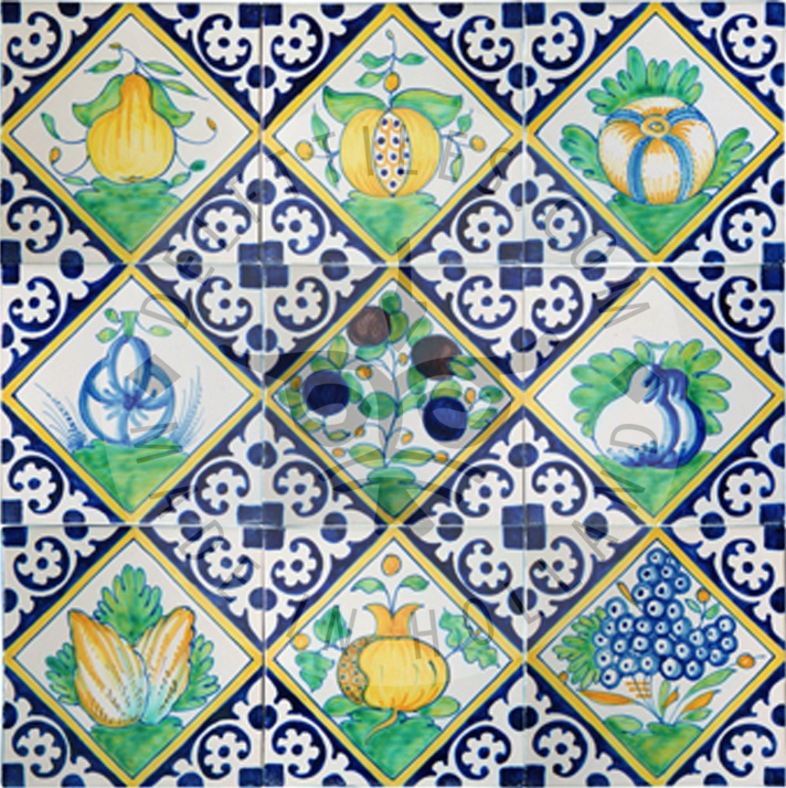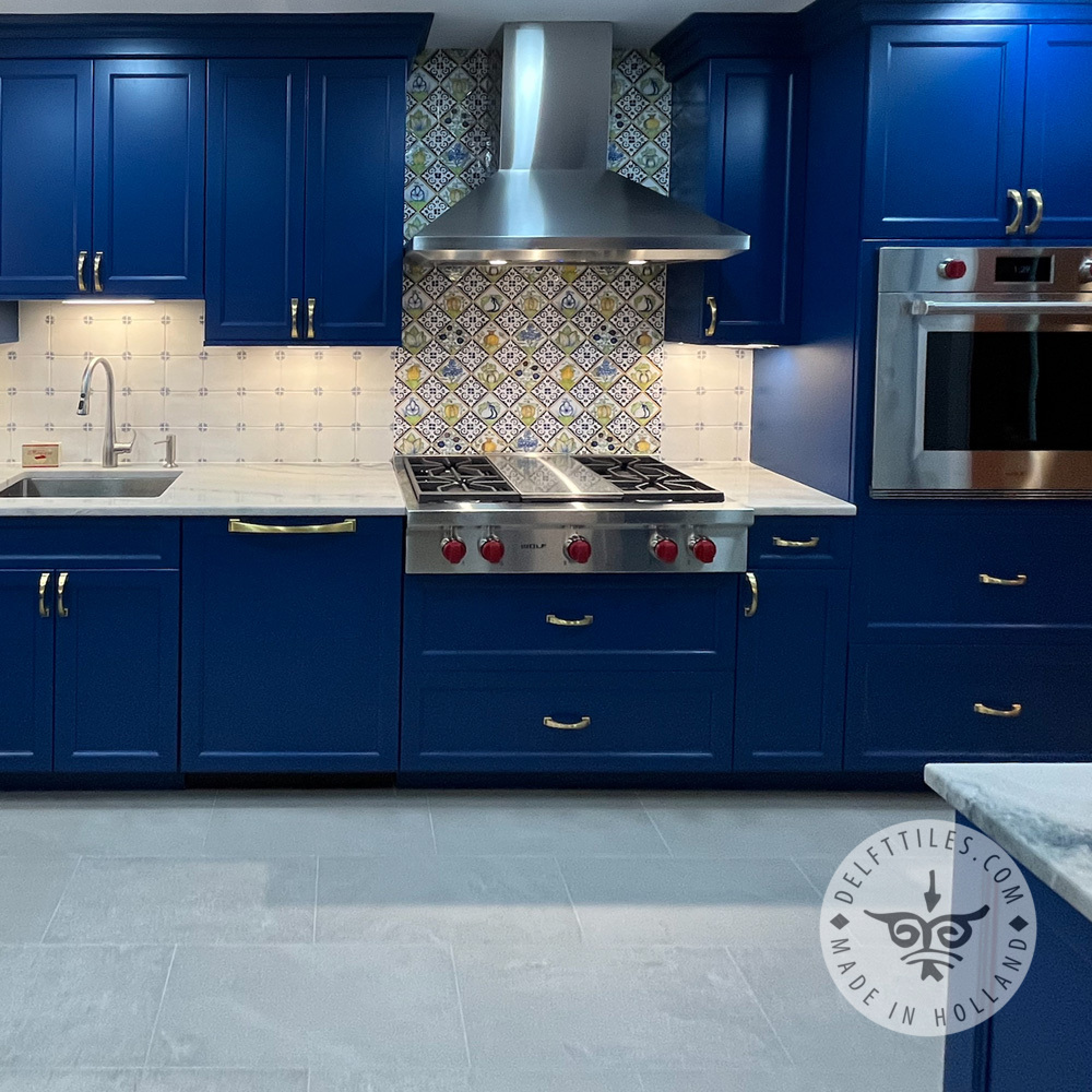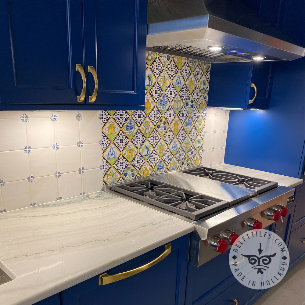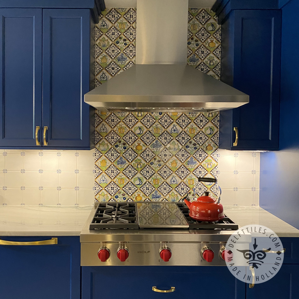 • Handgefertigte / bemalte holländische Delfter Fliesen.
