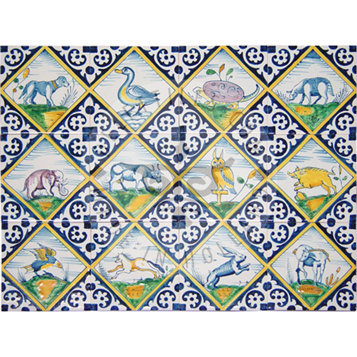 Polychrome Tiere auf quadratischen Fliesen (DK_mc)